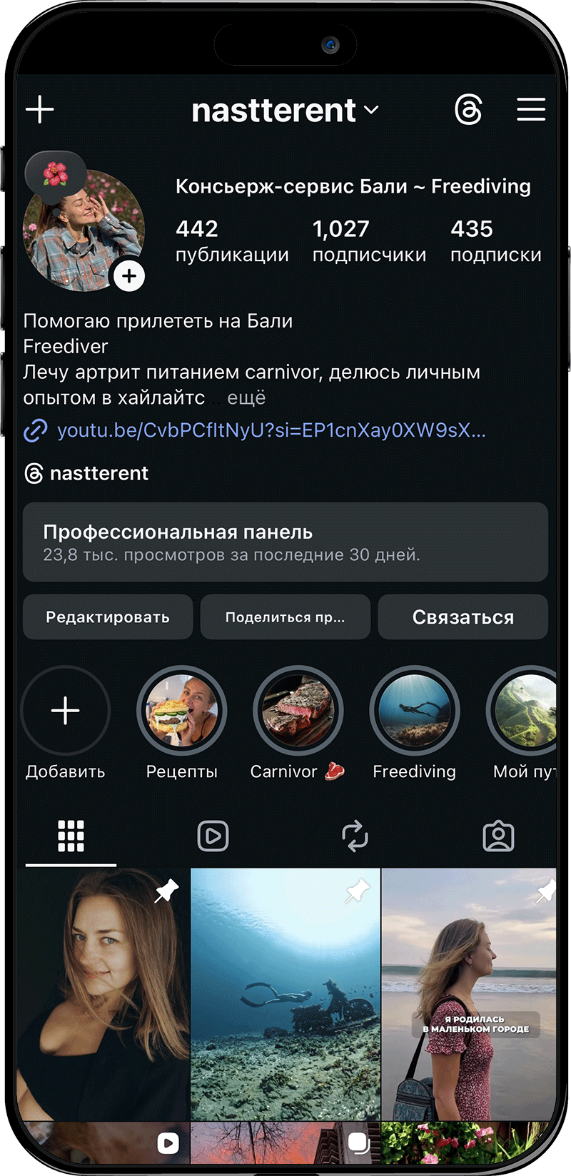 Продуманные маршруты и опыт — от фридайвинга до йоги на рассвете. Контент, который снимает себя сам.